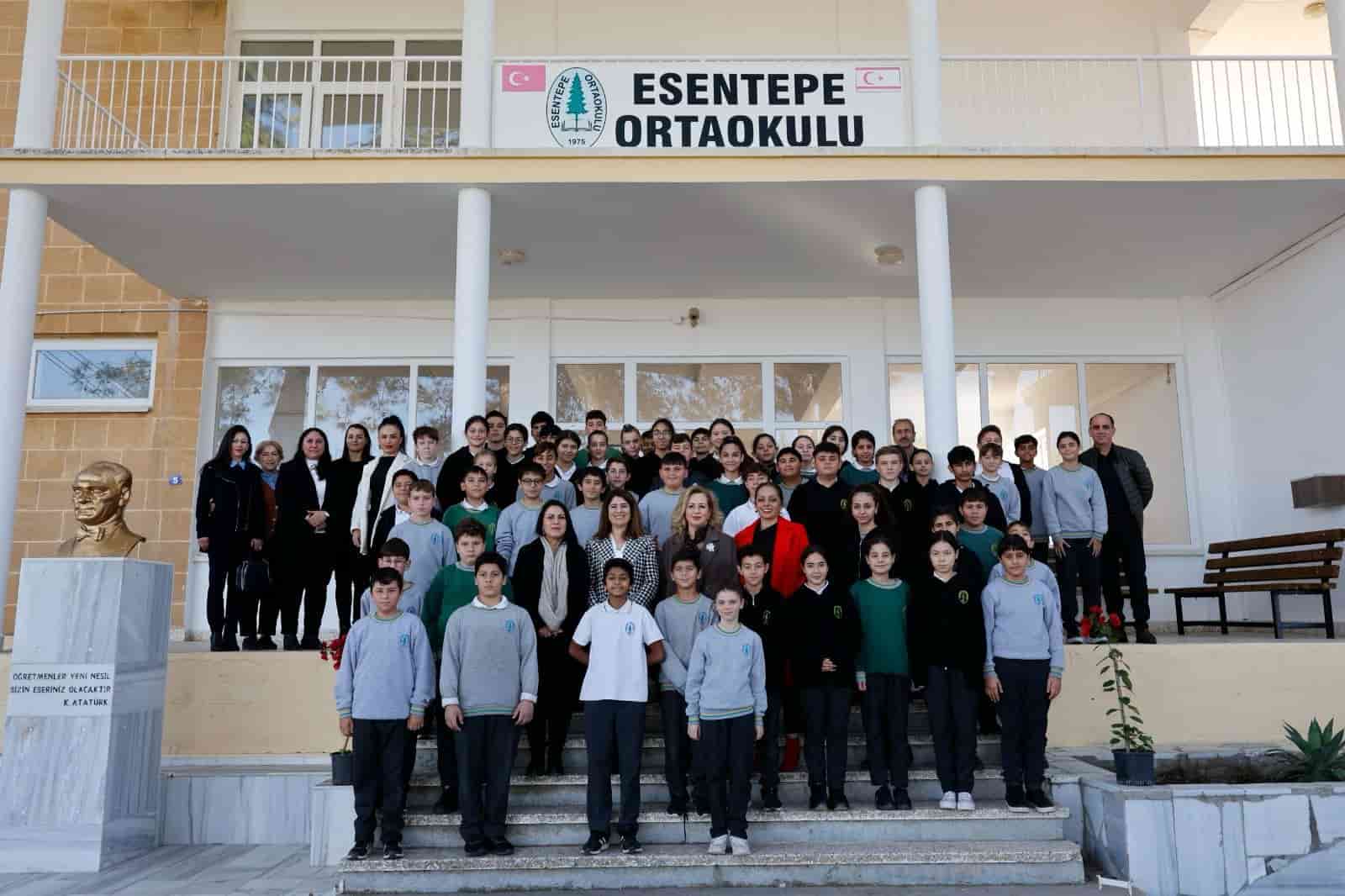 Cumhurbaşkanı Ersin Tatar’ın eşi Sibel Tatar, Hedef Sıfır Atık Projesi’nin uygulandığı Esentepe Ortaokulu’nu ziyaret etti.