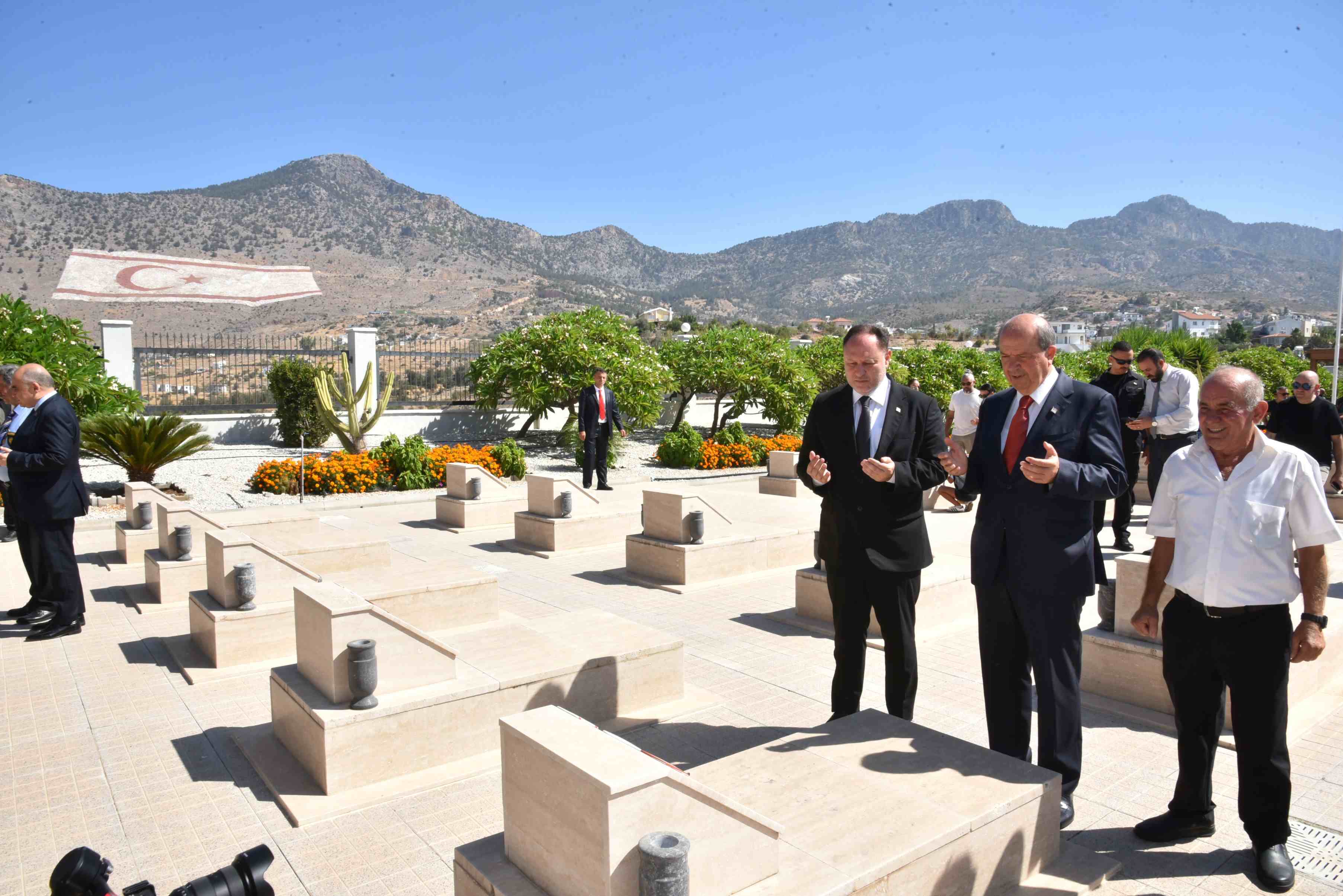 “Eğer bir anlaşma olacaksa mutlak surette iki devletin işbirliği, Anavatan Türkiye’nin garantörlüğünün devamı ve Türk askerinin caydırıcı bir güç olarak adadaki varlığı, bizlerin kırmızı çizgileridir.” diyen Tatar, geçmişi ve şehitleri hiçbir zaman unutmayacaklarını, onları kalplerinin bir köşesinde her zaman hatırlayacaklarını belirtti.