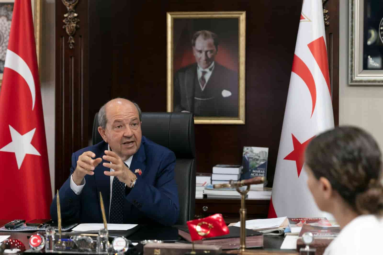 Cumhurbaşkanı Tatar, Barış Harekatı’nın yarattığı ortamdan geri dönmenin mümkün olup olmadığına ilişkin olarak, “Biz, Kıbrıs Türkü, şu anki şartlardan memnunuz. Hem bağımsız devlet sahibiyiz hem de birinci sınıf vatandaş olarak kendi ülkemizde yaşamaya devam ediyoruz” ifadelerini kullandı.