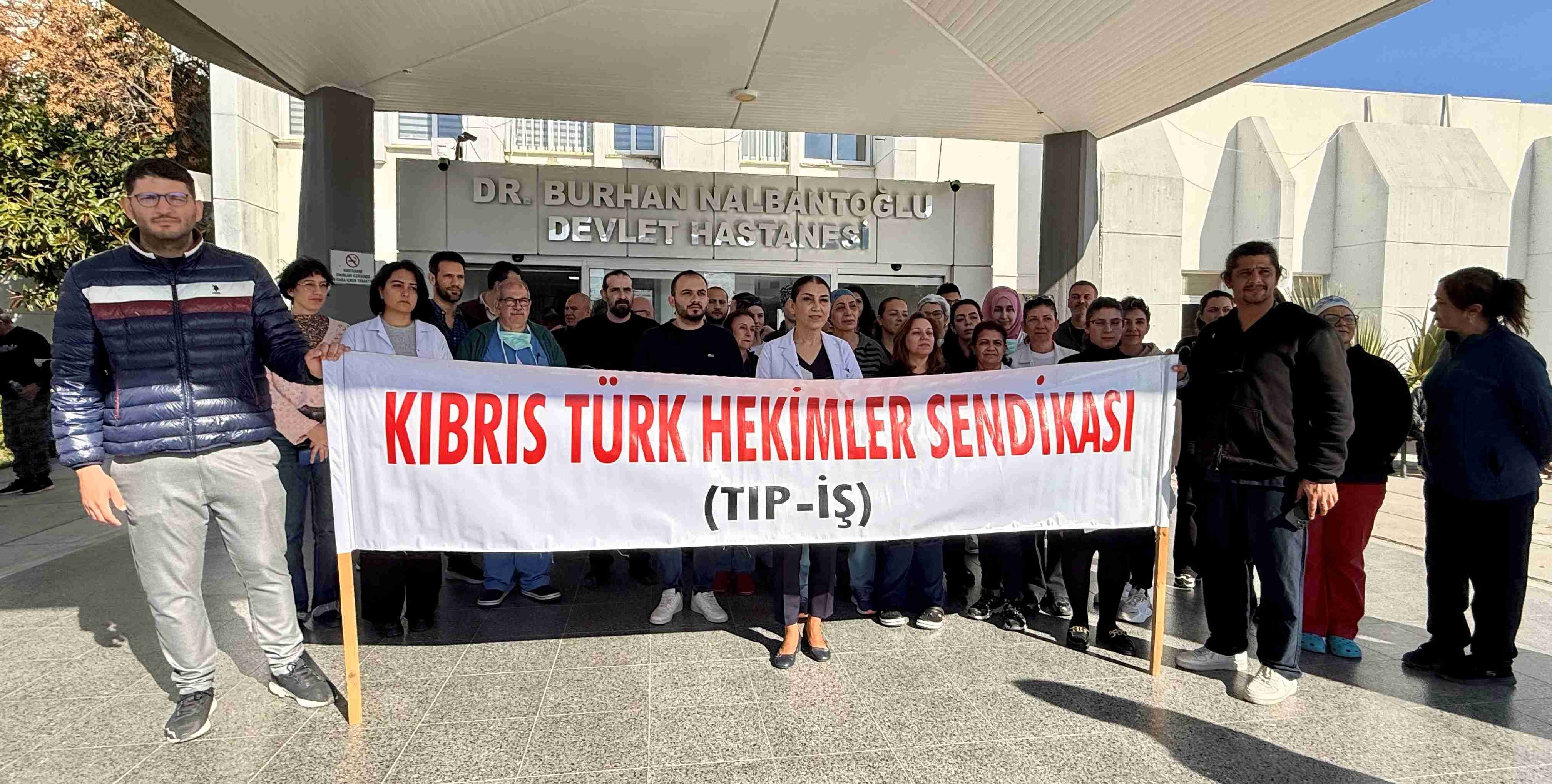 Tıp-İş, Lefkoşa Dr. Burhan Nalbantoğlu Devlet Hastanesi önünde, “Ameliyathanelerdeki eksiklikler, hasta ve cerrahi güvenliği” ile ilgili basın açıklaması yaptı.