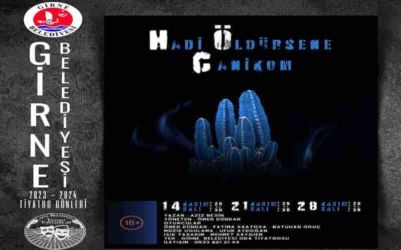 Girne Belediyesi Tiyatro Toplulukları adına yapılan duyuruda, Tiyatro Günleri kapsamında, Girne Belediyesi Oda Tiyatrosu’nda Kasım’da 3 oyun sahneleniyor. Oda tiyatrosunda yarın Hadi Öldürsene Canikom sahnelenecek.