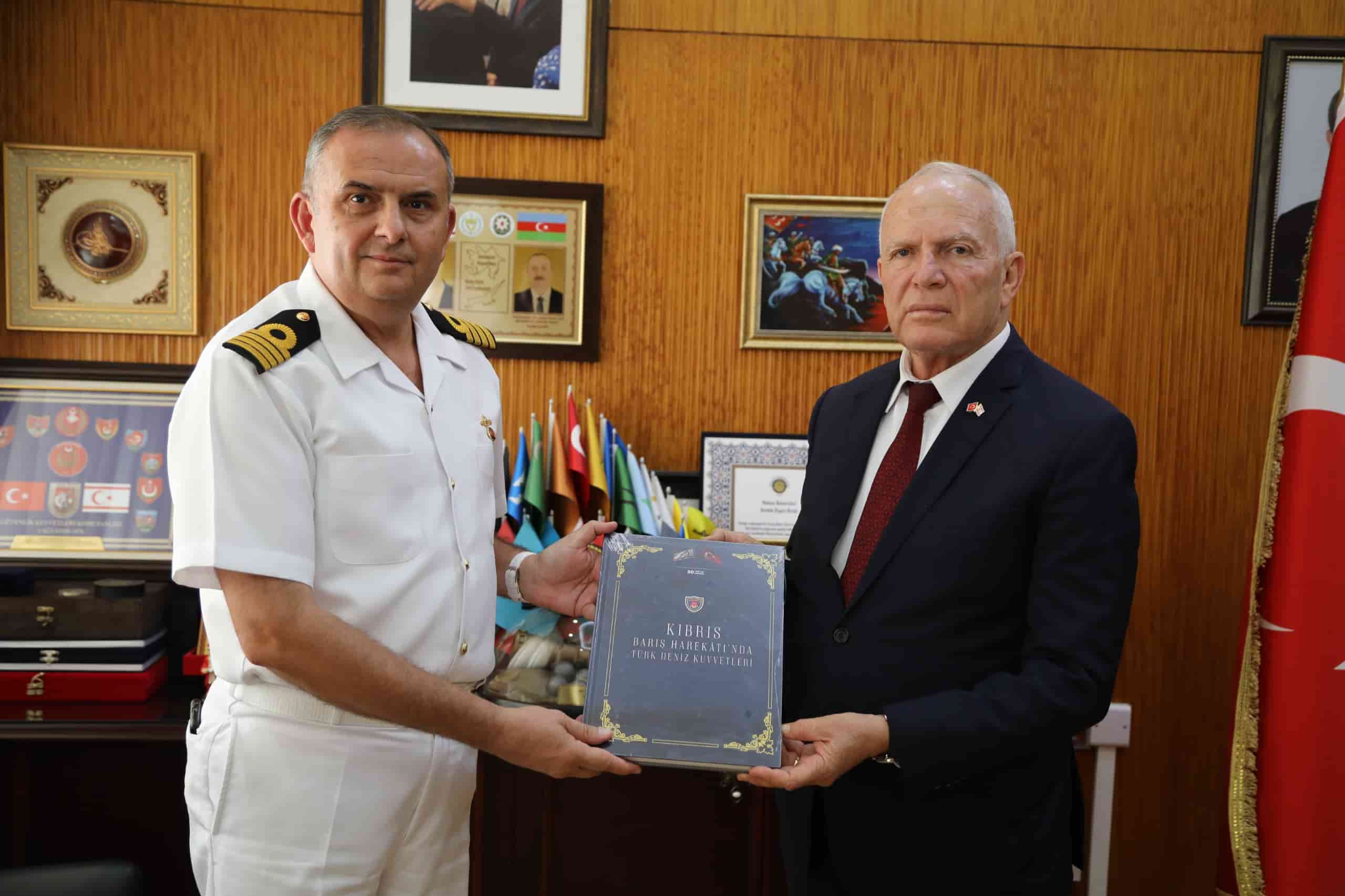 Gazimağusa Deniz Komutanlığı’nda görevli Yaman, kabulde Başkan Töre’ye Deniz Kuvvetleri Komutanı Oramiral Dr. Ercüment Tatlıoğlu tarafından hazırlanan “Kıbrıs Barış Harekatı’nda Türk Deniz Kuvvetleri” isimli kitabı takdim etti.