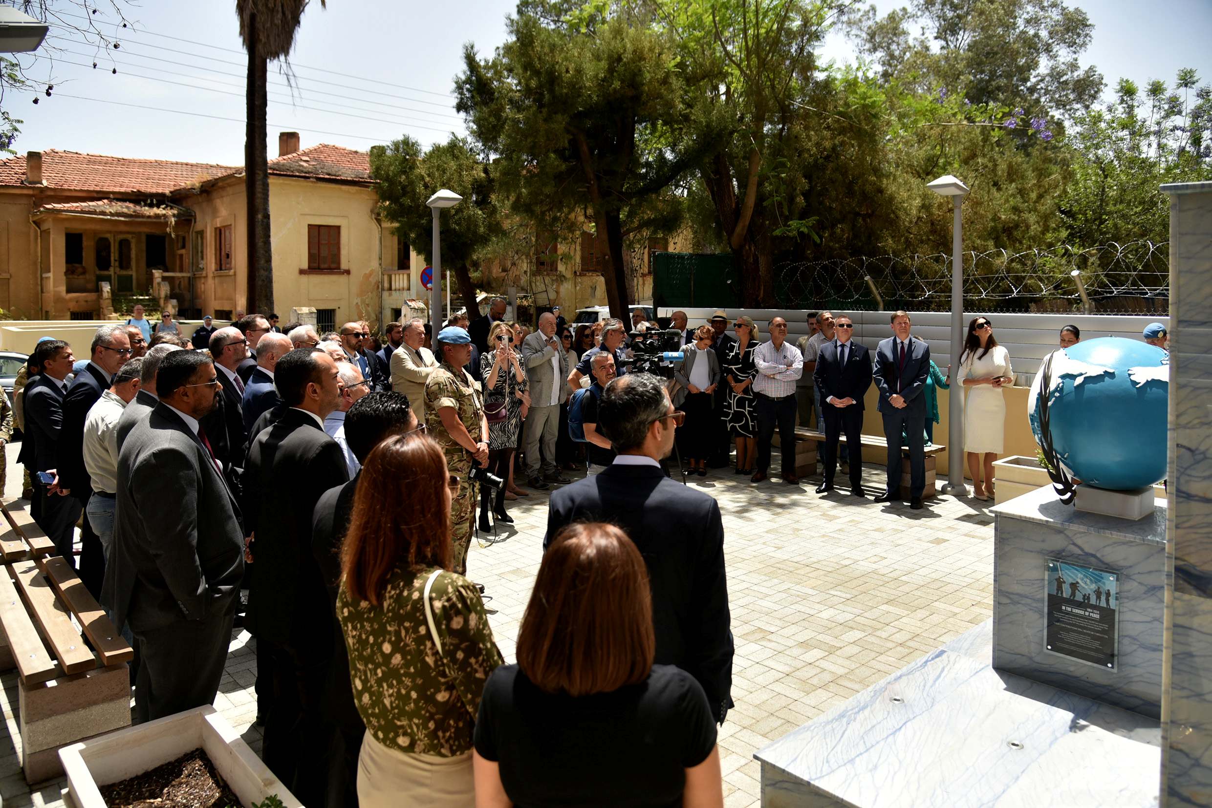 Slovak Elçiliği himayelerinde düzenlenen iki toplumlu siyasi parti toplantılarının başlamasının 36’ncı yıldönümü nedeniyle, toplantıların yer aldığı Ledra Palace Oteli civarındaki Barış Anıtı önünde tören düzenlendi.