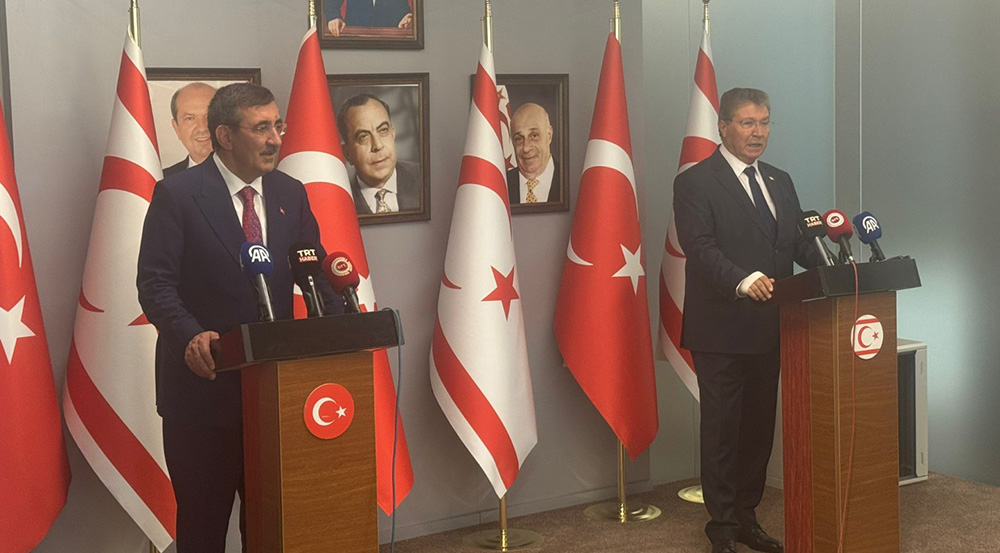 TC Cumhurbaşkanı Yardımcısı Cevdet Yılmaz ve Başbakan Ünal Üstel, Ercan Havalimanı’nda basın