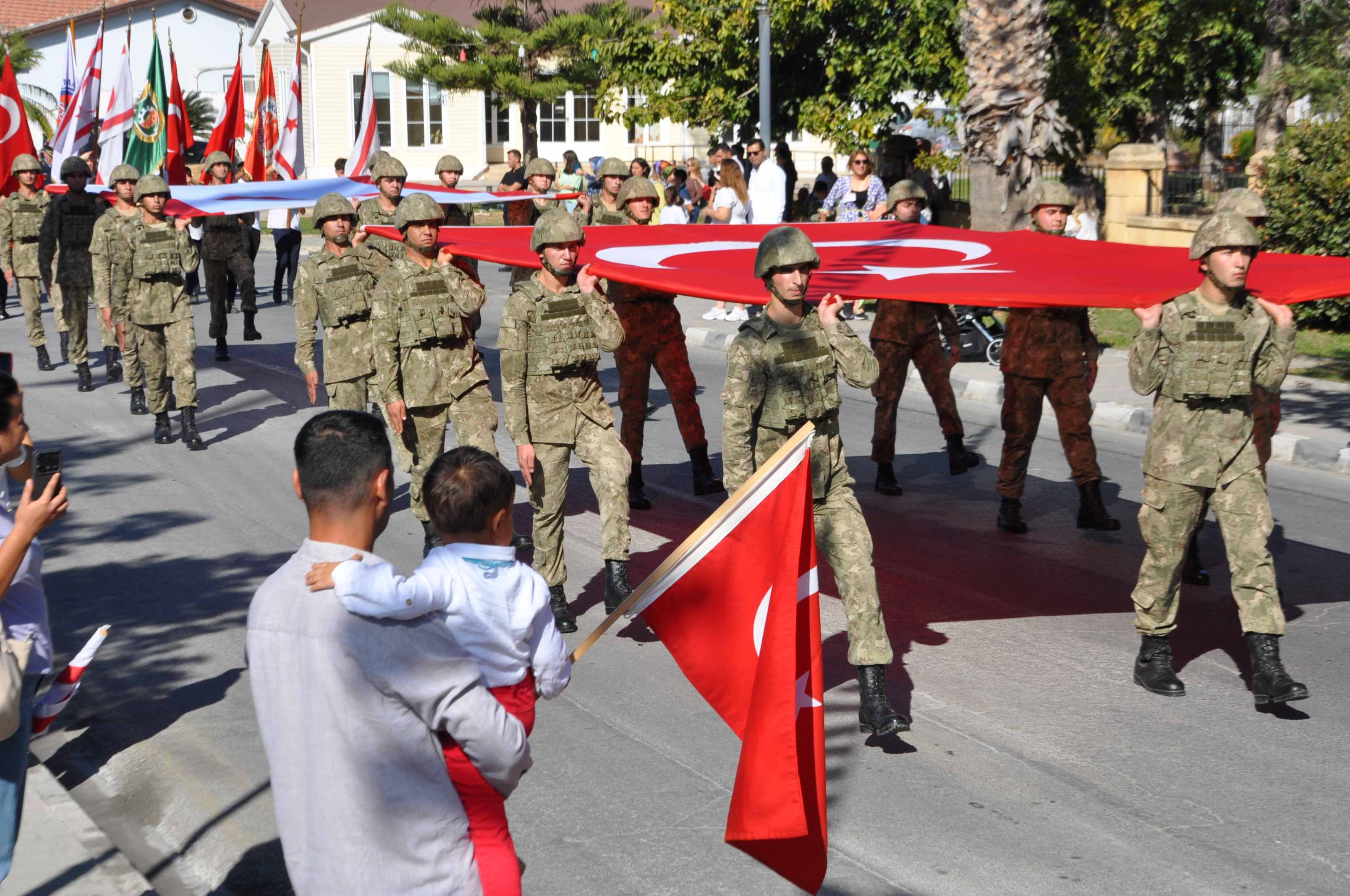 Törende, Şehit Turgut Ortaokulu öğrencisi Yiğit Duman da “Cumhuriyet” adlı şiiri okunmasının ardından bando eşliğinde Güzelyurt Kaymakamlık Binası önünden hareket eden kortej yürüyüşü Güzelyurt Kapalı Çarşı’ya geldi. Güzelyurt Belediye Başkanı Mahmut Özçınar’ın da katıldığı tören Güvenlik Kuvvetleri Bandosunun mini konseri ile sona erdi.