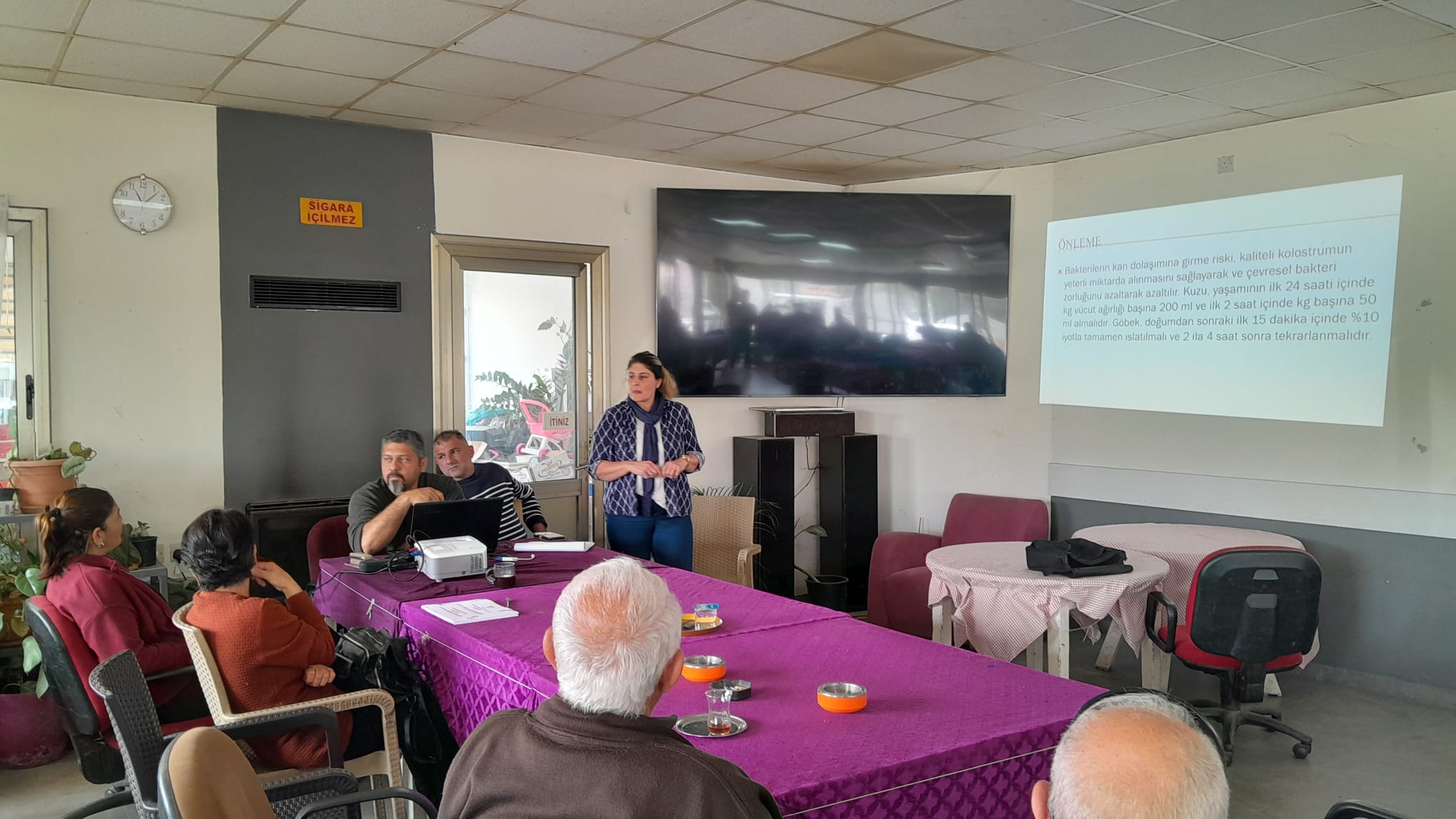 Veteriner Dairesi’nden Hayvan Sağlığı ve Patoloji Laboratuvar Sorumlusu Patoloji Doktoru Dr. Neslihan Öznur ve Vadili Kaza Veteriner Dairesi Sorumlusu Veteriner Hekim Ziya Tüzel ise kuzu ve oğlak ölümlerinin sebepleri ile alınabilecek önlemler üzerine bilgi verdi.