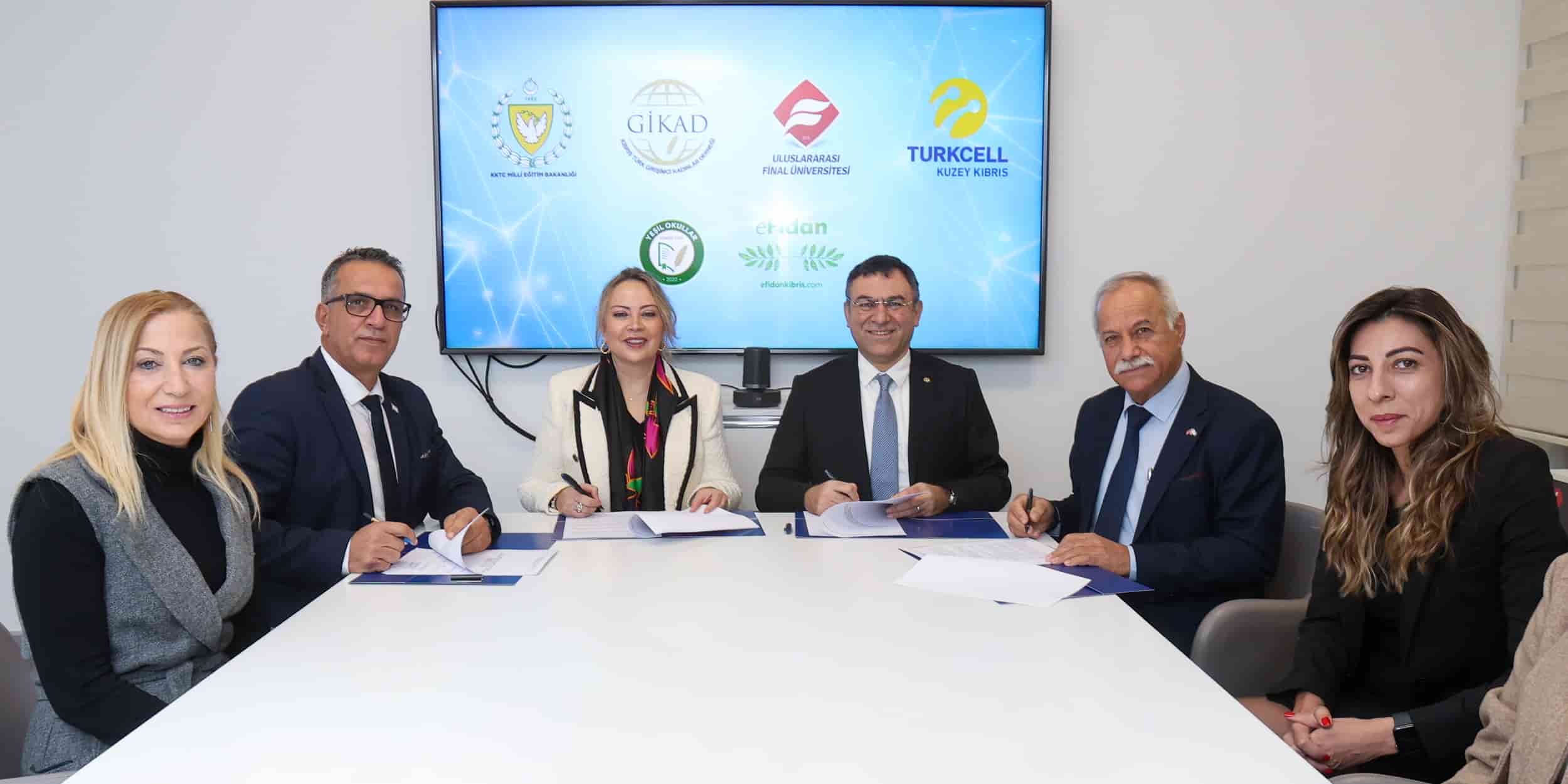 Kuzey Kıbrıs Turkcell Genel Müdürlük binasında imzalanan protokole, UFÜ Rektörü Prof. Dr. Hüseyin Yaratan, Milli Eğitim Bakanlığı Genel Orta Öğretim Dairesi Müdürü Cengiz Topel Uzun, GİKAD Başkanı Dr. İçim Kavuklu ve Kuzey Kıbrıs Turkcell Genel Müdürü Murat Küçüközdemir imza koydu.