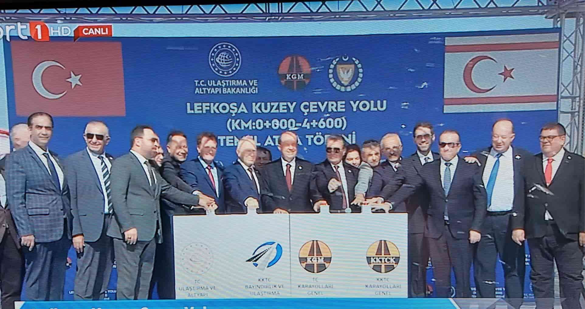 Lefkoşa Kuzey Çevre Yolu ile Lefkoşa Girne Anayolunun kesiştiği noktada inşa edilecek olan yonca kavşağı temel atma töreni, TC Ulaştırma ve Altyapı Bakanı Abdulkadir Uraloğlu’nun da katılımıyla yapıldı.