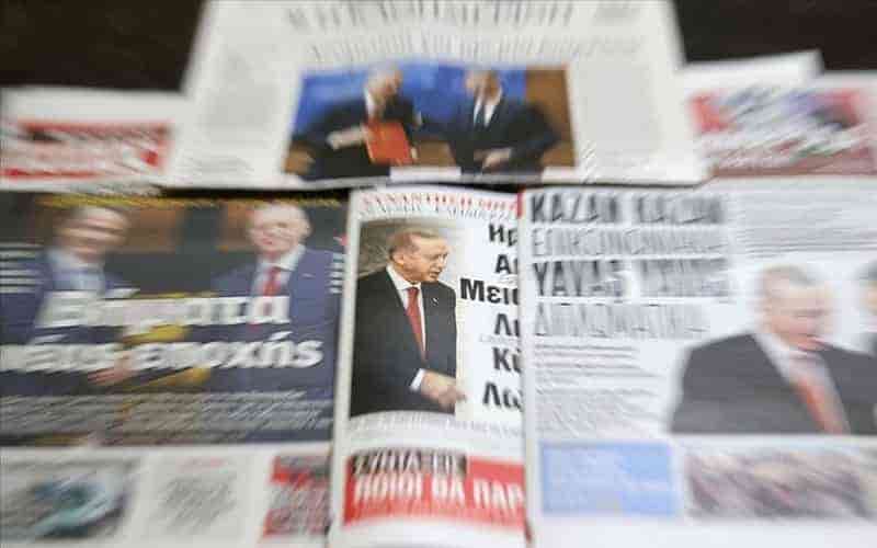 Kathimerini gazetesi “Sürekli huzur sözü” manşetiyle verdiği haberde, Cumhurbaşkanı Erdoğan’ın ve Yunanistan Başbakanı Kiryakos Miçotakis’in görüşme sonrası “dostluk” mesajlarını aktardı.